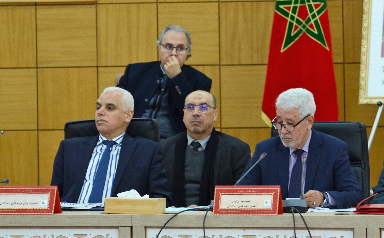 وقد ترأس أشغال الدورة السيد عبد الواحد الأنصاري، رئيس مجلس الجهة، الى جانب السيد والي جهة فاس مكناس عامل عمالة فاس،بحضور السيد عامل اقليم الحاجب، والسيدات والسادة أعضاء مجلس الجهة.