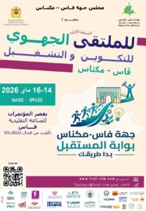 مجلس جهة فاس-مكناس ينظم النسخة الأولى للملتقى الجهوي للتكوين والتشغيل من 14 الى 16 ماي 2026 بقصر المؤتمرات للصناعة التقليدية بفاس.