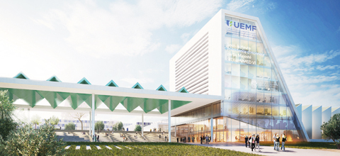 أنشئ هذا الحرم الجامعي بهندسة معمارية حديثة تذكر تمزج بين البصمة المغربية والطابع الأورو-متوسطي للجامعة، وبمعايير تقنية تراعي المتطلبات البيئية: استهلاك منخفض للطاقة، تكنولوجيات متكاملة للطاقات المتجددة، الاستعمال القصوي للضوء الطبيعي، إعادة التدوير، مساحات خضراء…